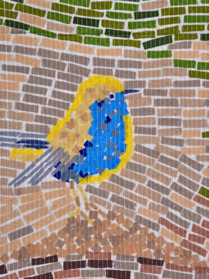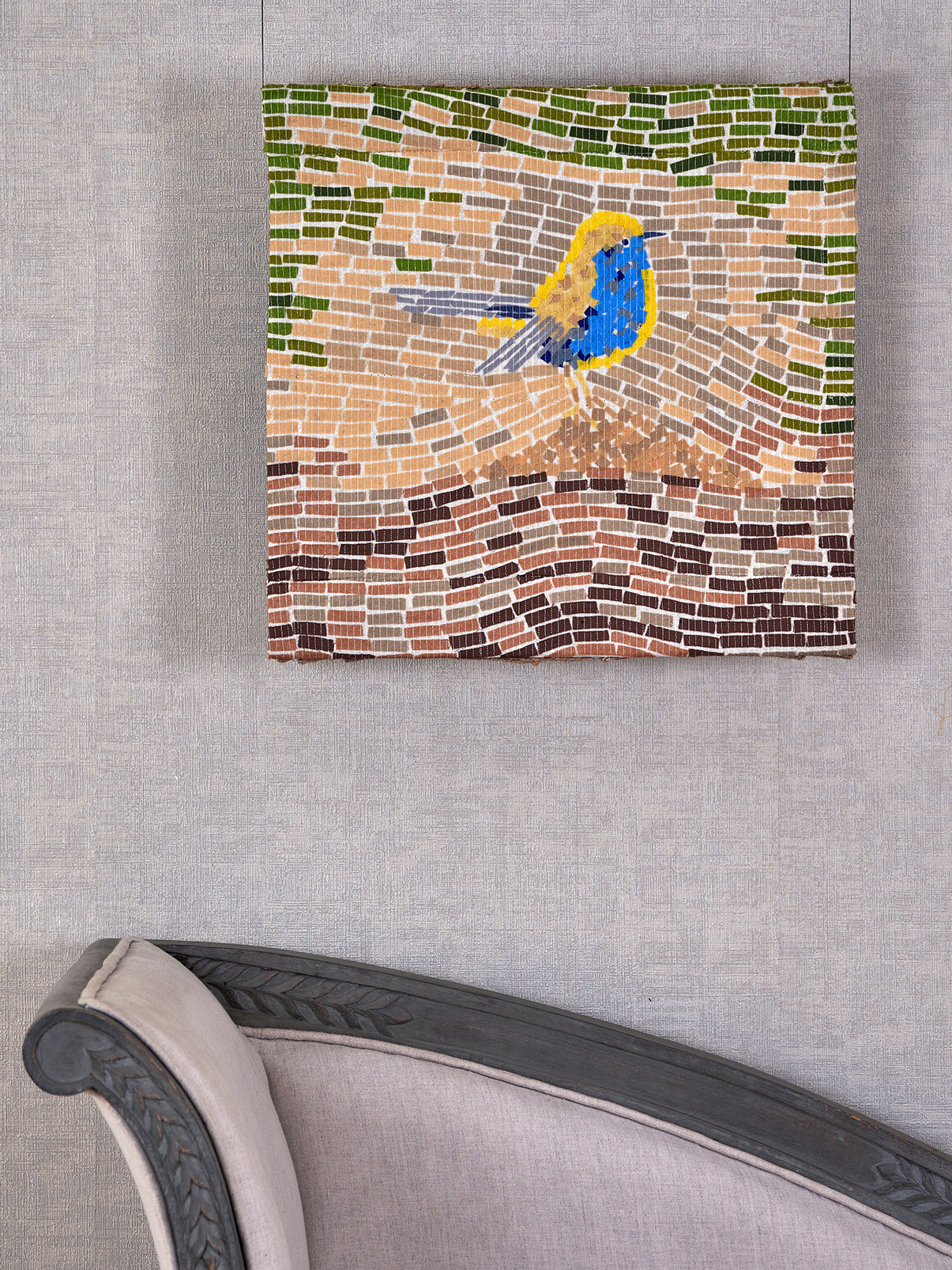 These are an assortment of various birds. Each has a distinct look created from its habitat. These small hangings are delightful and refreshing. The fabric pieces create the depth and render the colours of the bird which is a complex composition of  colours. The Fabric pieces impart a unique texture that lends to the ensemble. The hanging is backed by banana fibre and finished with jute. This adds the crispness and the jute detail makes it interesting from the reverse hence making it a unique space divider.