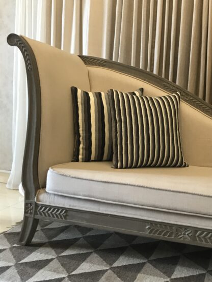 Introducing our new range of Black white pleated cushions. Several pleats of fabrics are assembled to construct the top surface of the cushion. Held together by a decorative chevron stitch this style of cushions bring the stark simplicity alive. The Black and white stripes are a classic design element that fit in all kind of interiors. They add an edge to the space and remind us of the fact that straight lines can be as eclectic as ornate forms. You can place these horizontal or vertical and accentuate the space.