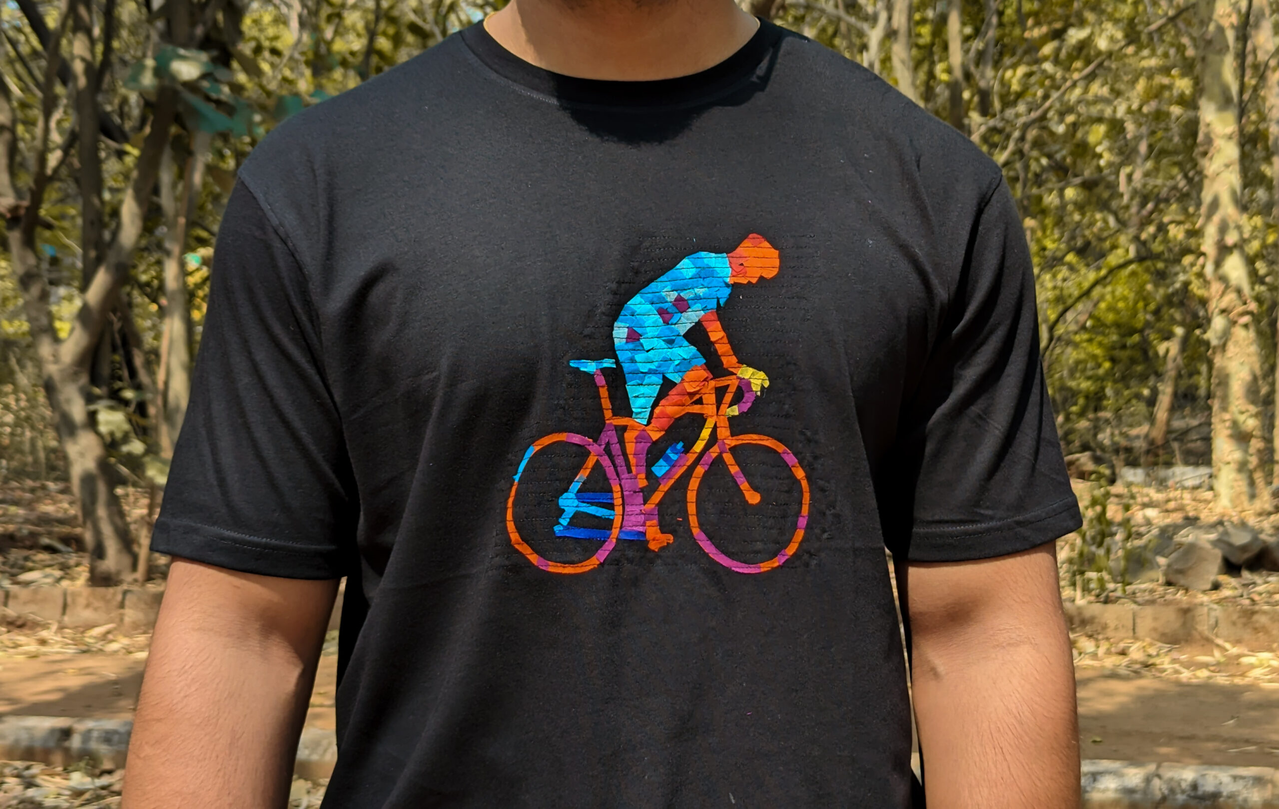 Experience the thrill of cycling with our latest range of T-shirts featuring the colourful climbing cyclist motif, crafted using Calyz’s proprietary handcrafted fabric collage technique. Each T-shirt is made from 100% cotton, ensuring a soft and comfortable fit that’s perfect for summer days. The climbing cyclist motif is beautifully rendered using a blend of different fabrics, creating a unique and vibrant design that’s perfect for cycling enthusiasts and fashion lovers alike. Elevate your summer style with these must-have T-shirts and stand out from the crowd with their eye-catching design. Get your hands on these limited edition T-shirts by Calyz today!