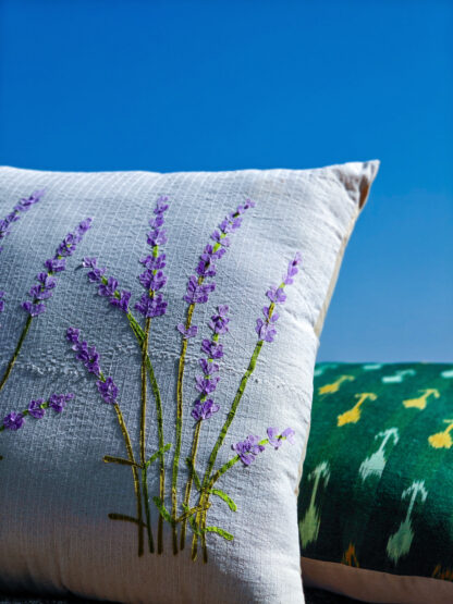 Each cushion is crafted with a cotton front, showcasing intricate floral patterns created using our proprietary handcrafted collage technique. This innovative process ensures vibrant, detailed designs that are truly one of a kind. The linen back adds a touch of sophistication and durability, making these cushions as functional as they are beautiful.