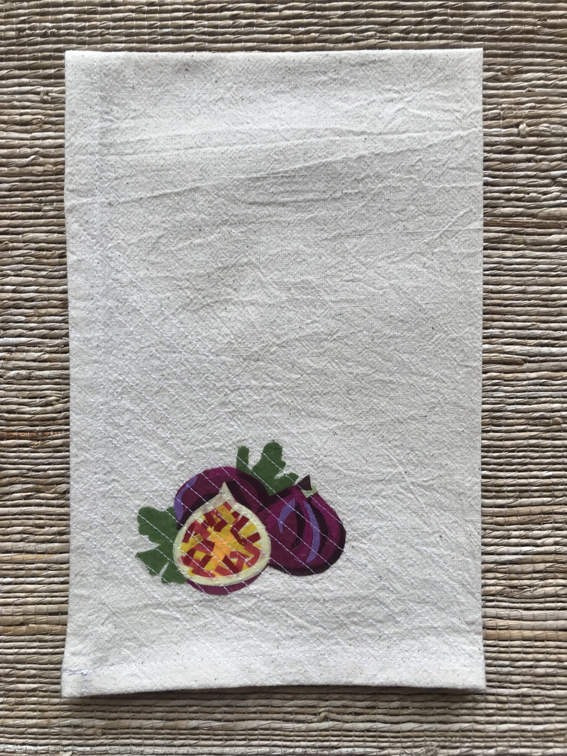 Set of 3 Tea Towels with designs of Apple banana, Figs and Pineapple