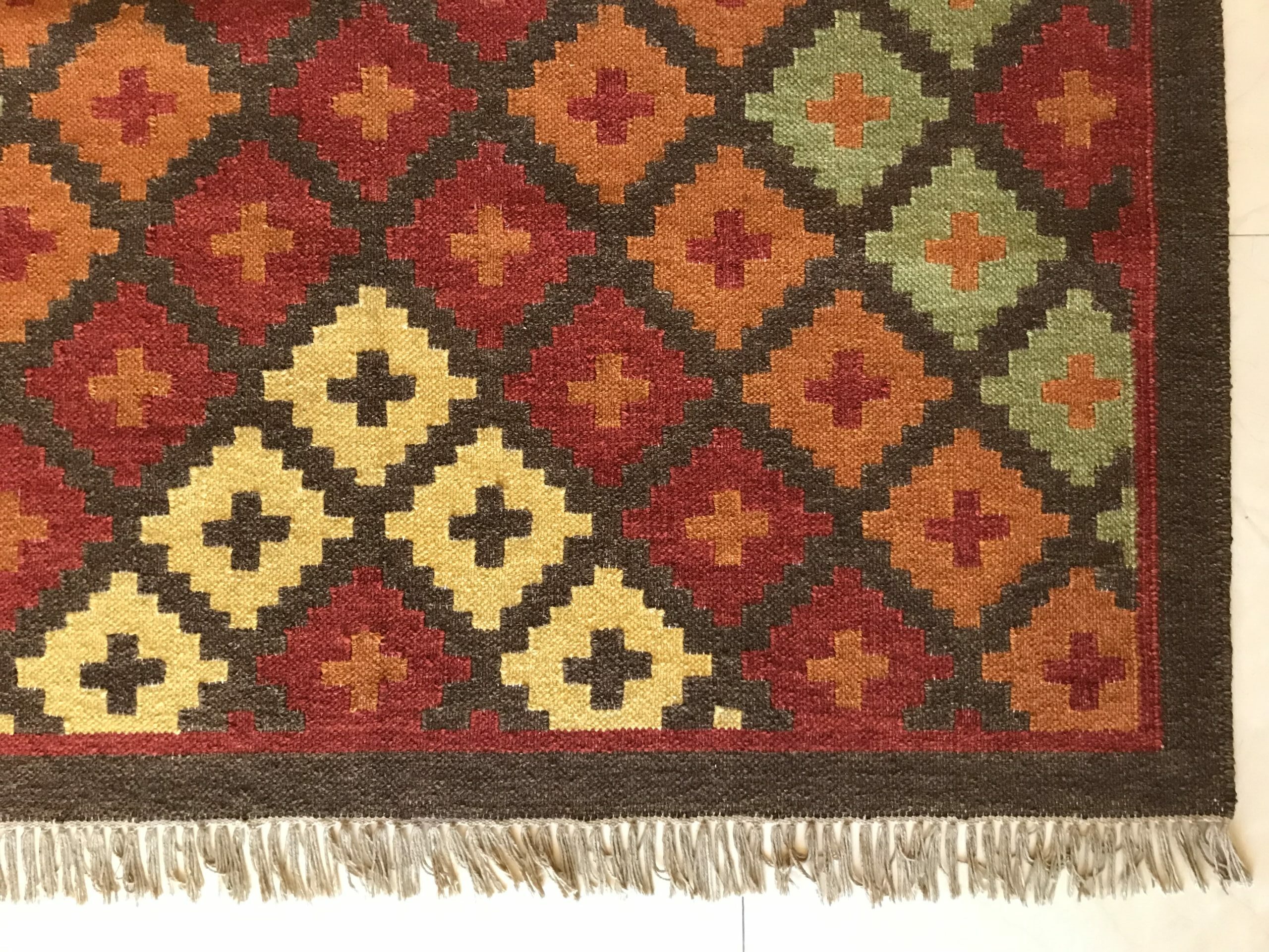 This rug has the festive colors set in a beautiful geometry. It will elevate your space and bring good cheer at all times.